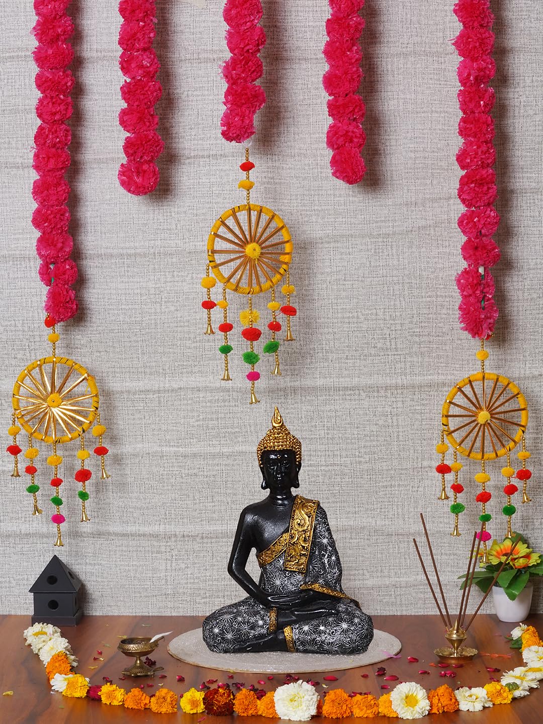 Dekorly Artificial Marigold Flowers Garland with Chakra Home Office Decor