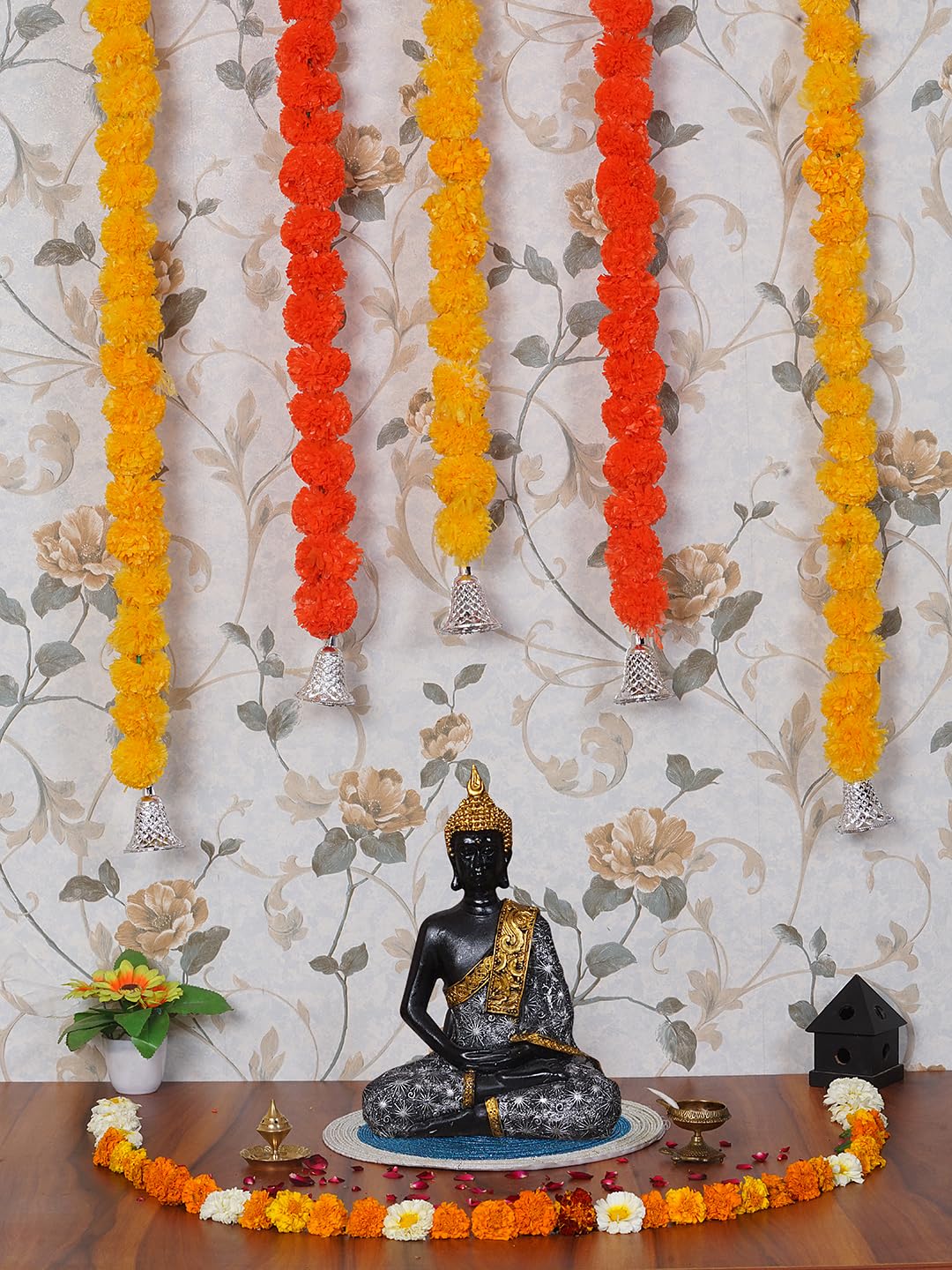 Dekorly Artificial Marigold Flowers Garland with Silver Bells for Home, Office
