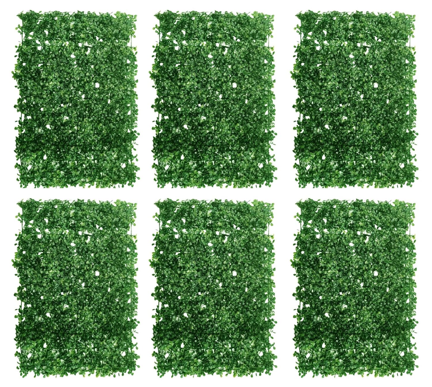 The UV-protected faux grass wall mat is easy to install on any flat surface using hooks, nails, or adhesive. Panels can be cut, shaped, and connected to fit any wall size or design.