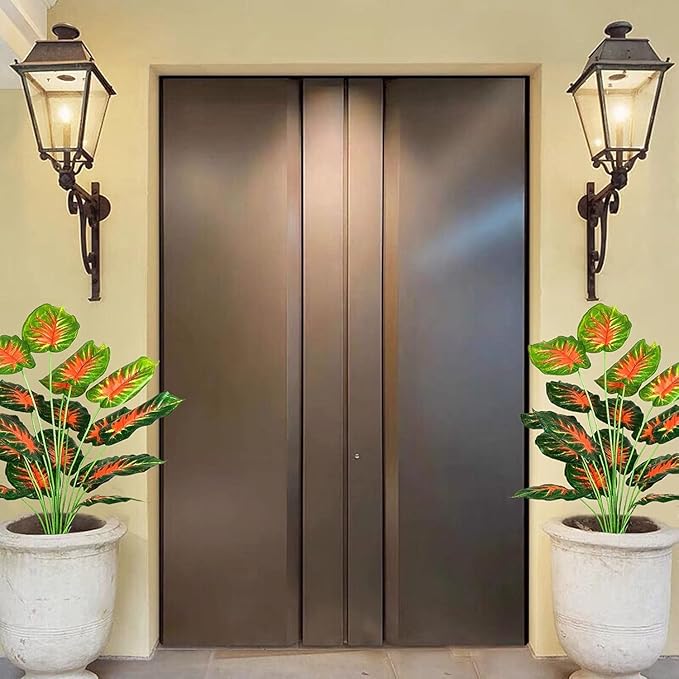 - Artificial outdoor plants are made from high quality UV resistant plastic material, more realistic, vibrant color, eco-friendly and hassle free, No need to maintain or care for them, which can be washed by water and never fade.